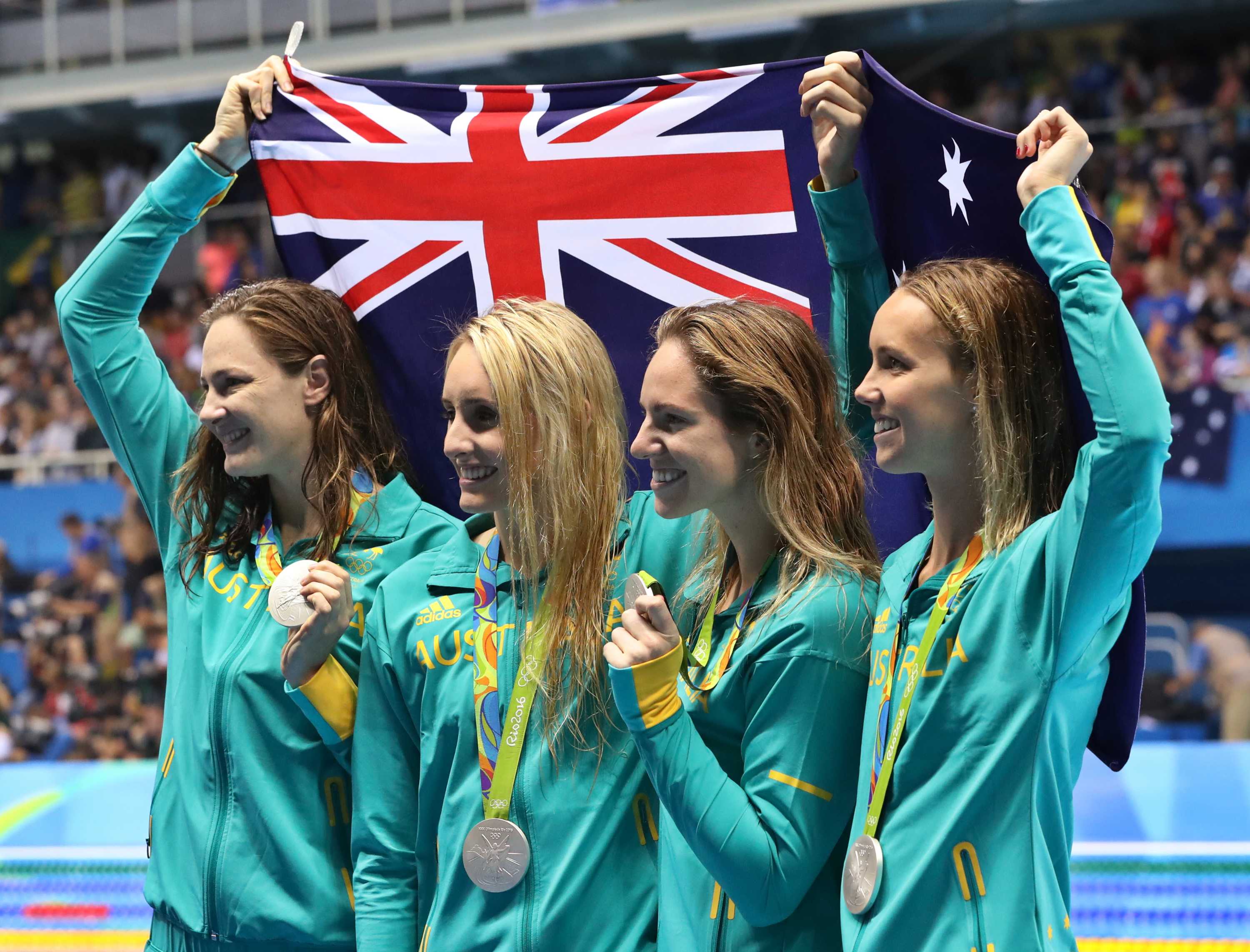 Canada's bronze medal winning women's 4x100 medley relay team at the tokyo olympics. The women's 4x100m medley relay won australia's 12th gold medal overall the tokyo olympics. In the women's 4x100m medley relay, dual individual gold medallist kaylee mckeown led australia off in the backstroke. The usa quartet finished in a time of 3:51.73. (left to right) kylie masse, sydney pickrem, maggie mac neil and penny oleksiak after the medal.